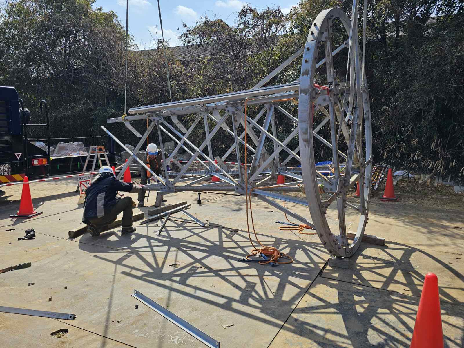 送電線・通信塔・自動運転インフラなどの鉄塔・柱構造物を、設計仕様に基づき組立・設置・撤去します。鋼管圧入や杭打ち、付帯補強工事まで含め、高精度かつ安全性を重視した施工を提供します。